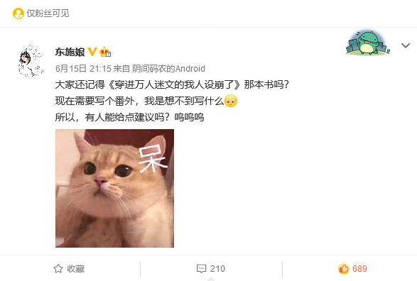 아래 트윗과 같이 번역해두었듯, 웨이보에서 팔로워만 볼 수 있는 포스팅으로 번외 의견을 받고 계세요.