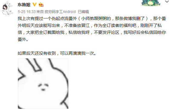 어제 본편 완결났고 작가님의 웨이보 메세지로 전편 구매 인증샷을 보내면